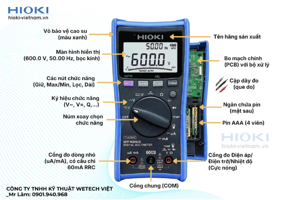Nhìn chung, cấu tạo của đồng hồ hiện số như đồng hồ hioki khá đơn giản nhưng được tối ưu để đảm bảo độ chính xác và dễ sử dụng trong nhiều môi trường khác nhau.