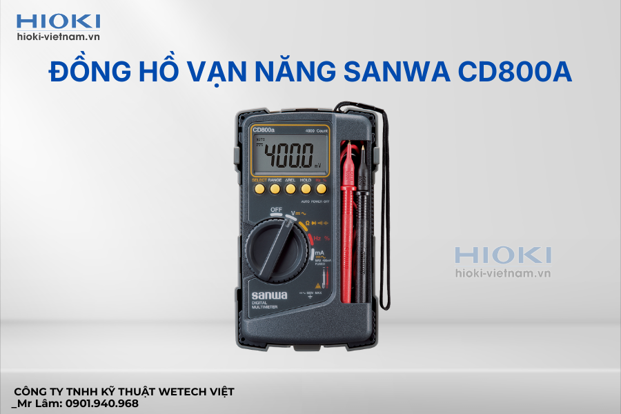 Sanwa CD800a được đánh giá cao nhờ độ bền và khả năng hiển thị rõ ràng. Thiết bị hỗ trợ đo điện áp AC/DC, điện trở, tần số và thông mạch.
