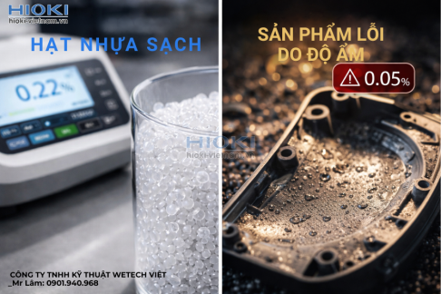 Trong ngành nhựa, độ ẩm của nguyên liệu đầu vào ảnh hưởng trực tiếp đến chất lượng sản phẩm sau khi gia công. Nếu hạt nhựa chưa được sấy đạt chuẩn, sản phẩm có thể xuất hiện bọt khí, bề mặt sần hoặc giảm độ bền cơ học. Vì vậy, việc kiểm tra độ ẩm nguyên liệu trước khi đưa vào máy ép là bước kiểm soát quan trọng trong quy trình sản xuất.