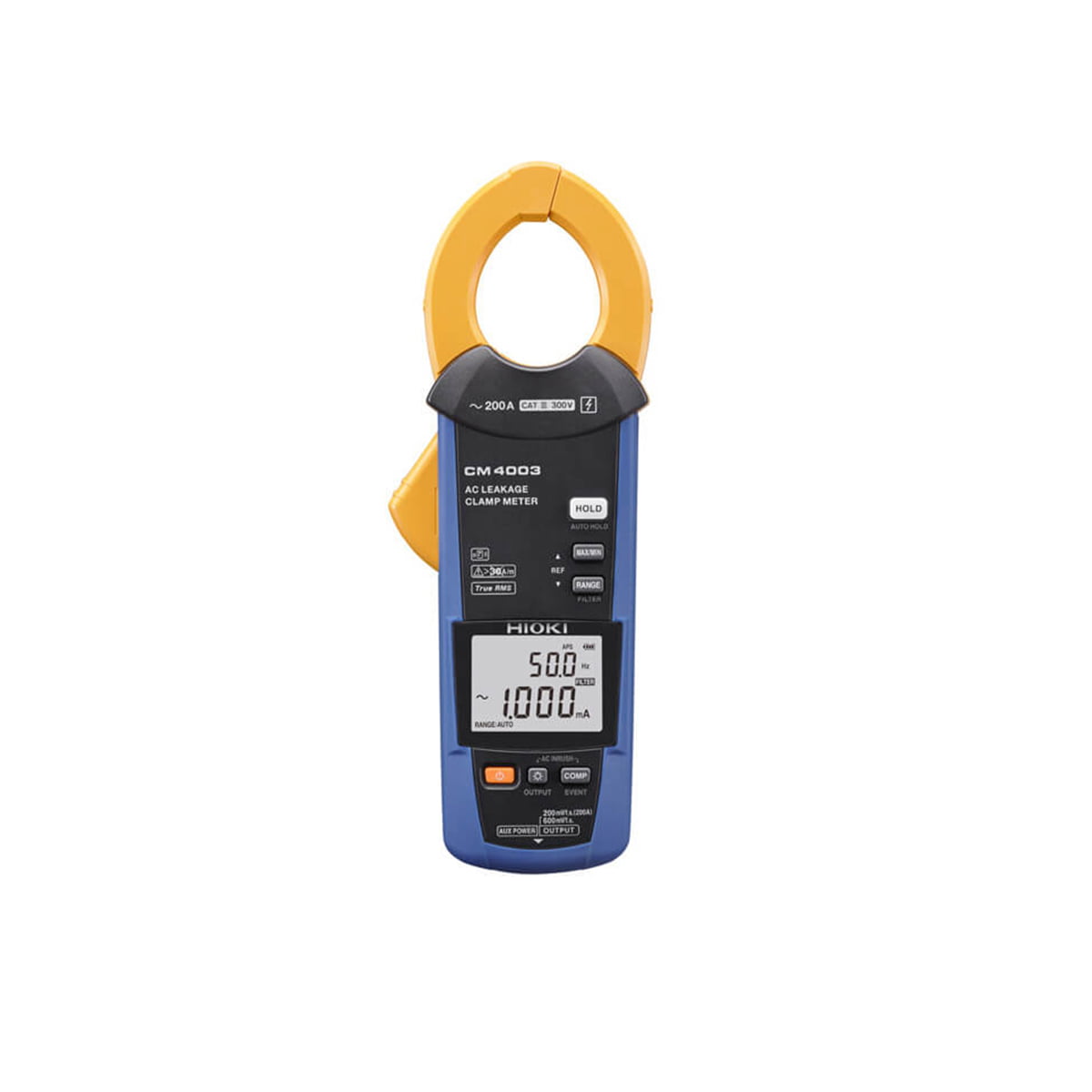 | Các chức năng khác của CM4003 | Hiển thị giá trị Max/Min/AVG/PEAK MAX/PEAK MIN, Hiển thị giữ giá trị và tự động giữ; Đèn nền, Tự động tiết kiệm điện, Âm thanh rung, Hiển thị đếm kết quả đo, So sánh, Ghi kết quả đo tối giản, Đo dòng điện Rush |